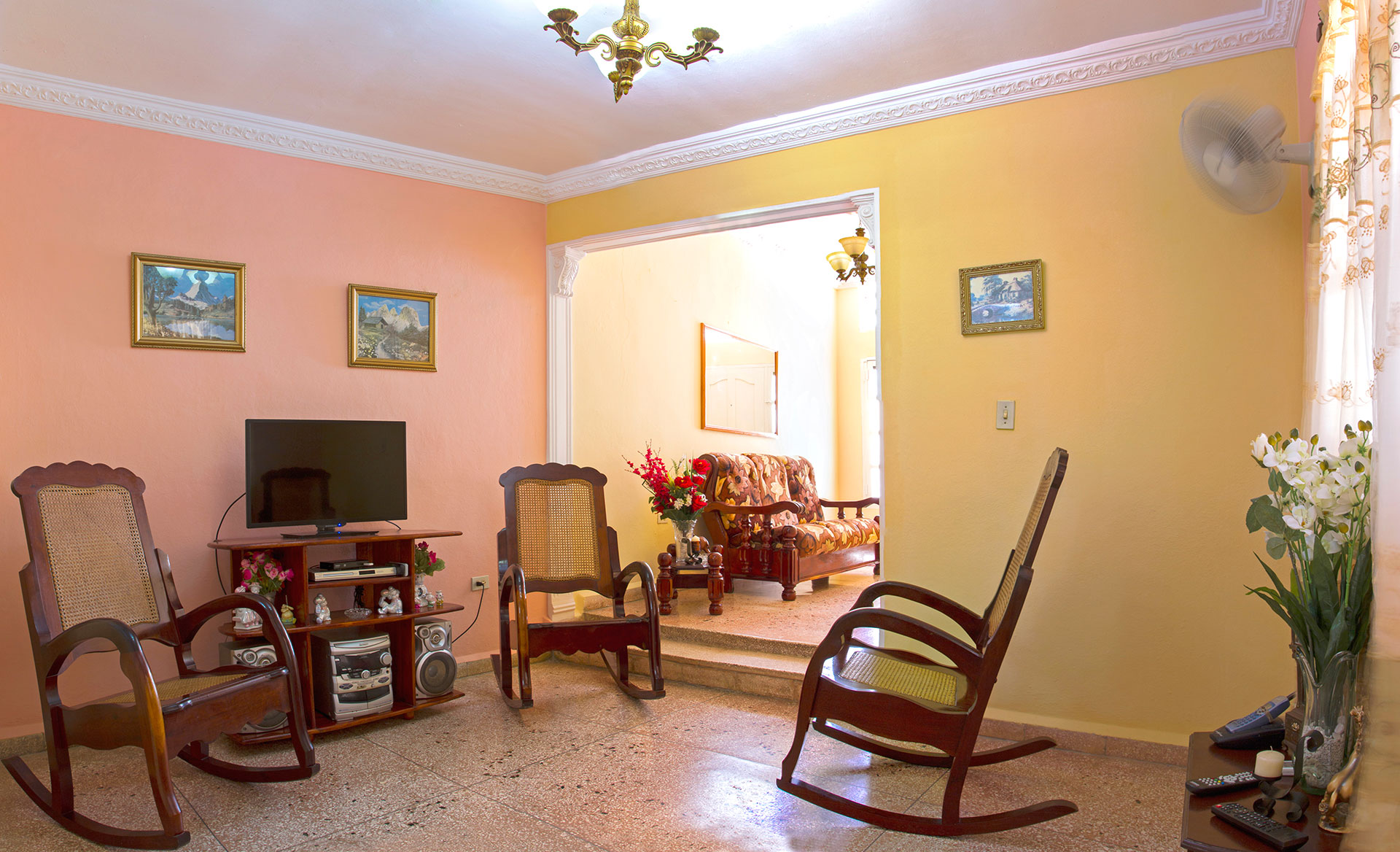 Nuestra casa está ubicada en el Centro Histórico de la Ciudad, patrimonio de la Humanidad, cerca de la plaza Santa Ana, Museos, Plaza Mayor, Casa de la Música y otros centros culturales y de interés. Además Trinidad es conocida por sus bellezas naturales y quien la visite puede disfrutar de sus montañas, valles y playas. La casa está formada por dos niveles con 3 habitaciones; primer nivel: sala, saleta, cocina-comedor, 2 habitaciones y 2 baños, pasillo y patio; segundo nivel: 2 habitaciones con baños privados, terraza para servicio o recreación y terraza para el servicio de lavandería. También posee una terraza mirador desde la que se puede ver parte de la ciudad y la tan deseada puesta del sol acompañado de unos deliciosos cocteles que ofertamos. Asi que para que esperar de