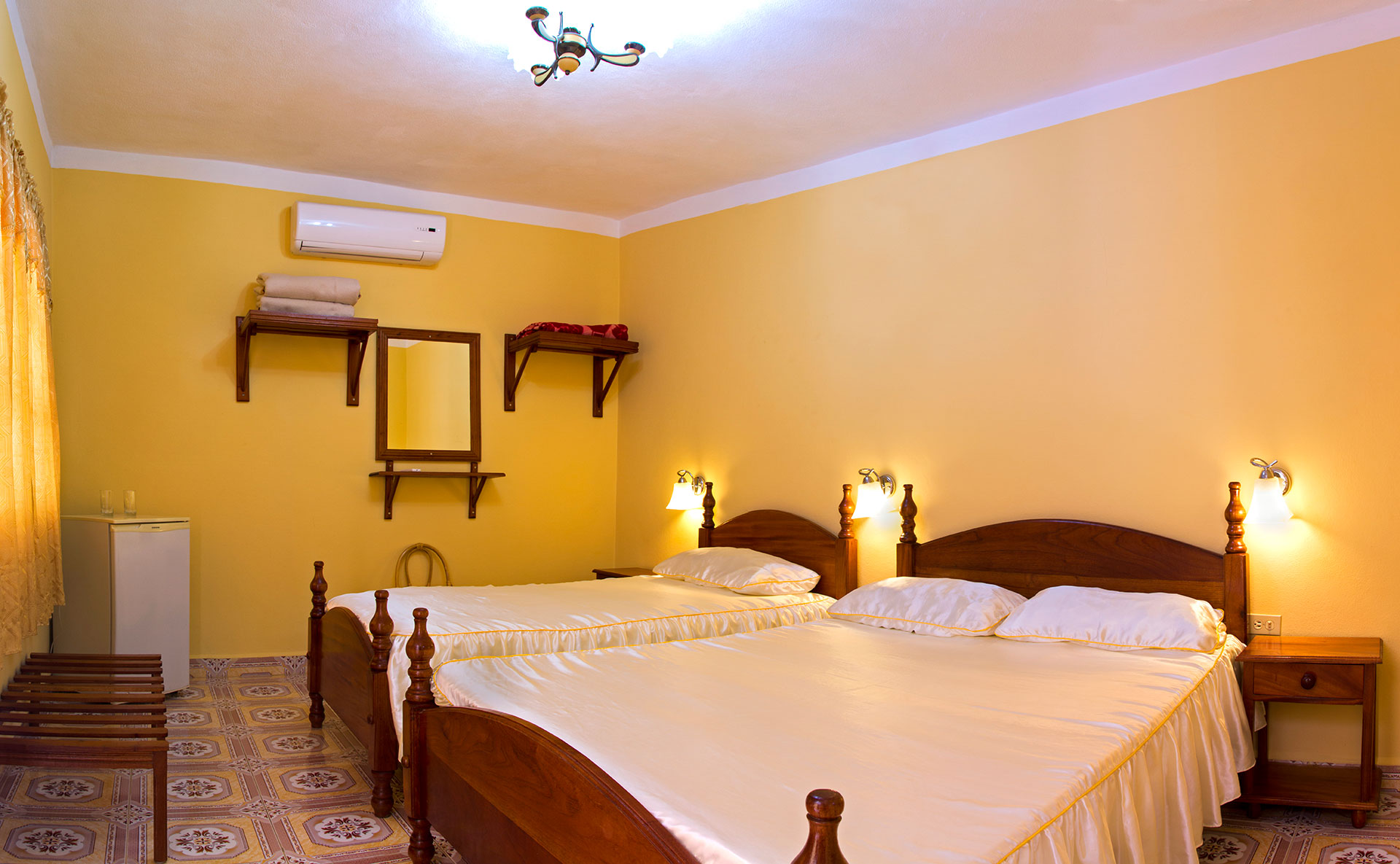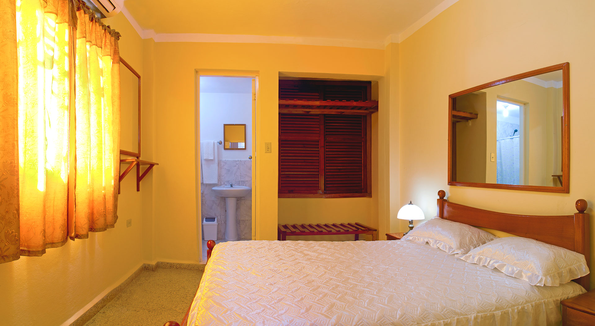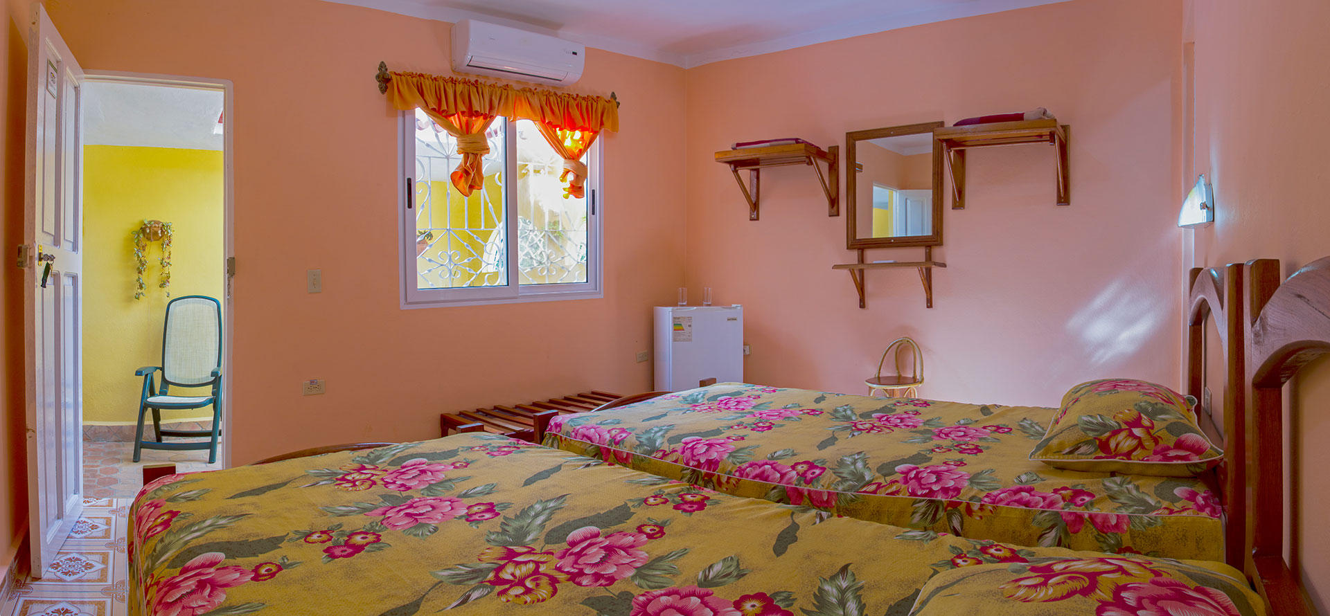 Nuestras habitaciones tienen: Baño privado, aire acondicionado tipo split, refrigerador, ropa de cama; limpieza diaria y cambio de ropa de cama cada 2 noches.